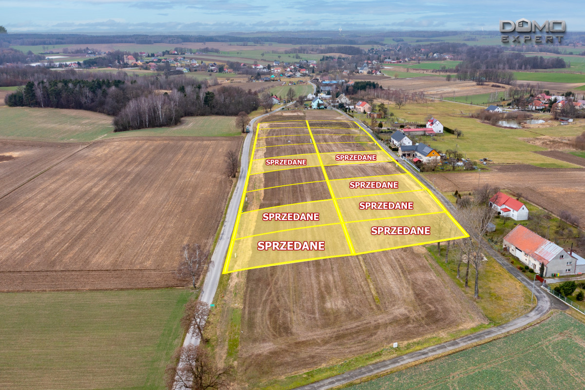 Wszystkie działki uzbrojone: prąd, woda, kanalizacja.